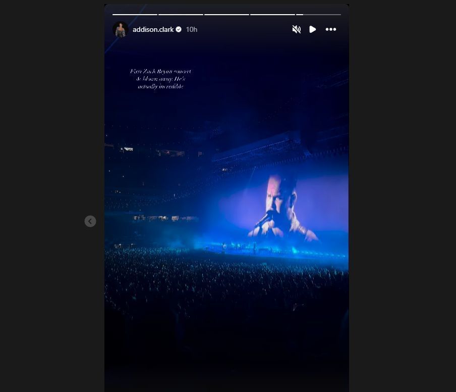 Addison posted several updates on her Instagram, starting with a selfie of the couple at the stadium. She captioned the photo while letting everyone know they were there for "Zach Bryan Night":