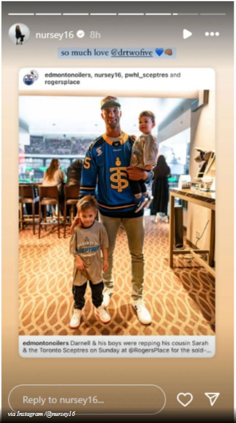 The Oilers’ Instagram account posted a picture of Darnell with his two kids, Aiden and Chase, at Rogers Place. The defenseman was among the packed crowd of 17,518 watching the game as his cousin’s team won 3-2 in overtime.