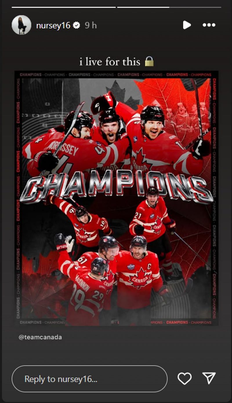 The PWHL player had shared a picture of the Canadian team players, originally posted by Team Canada’s official Instagram account, on her Story.