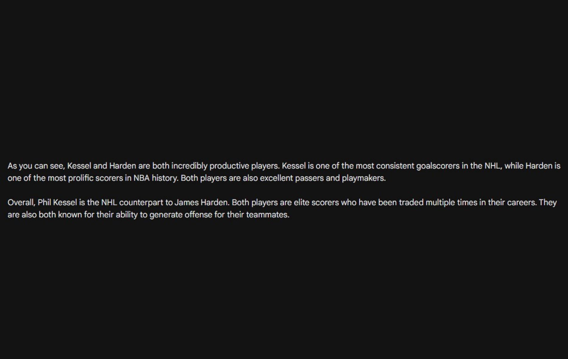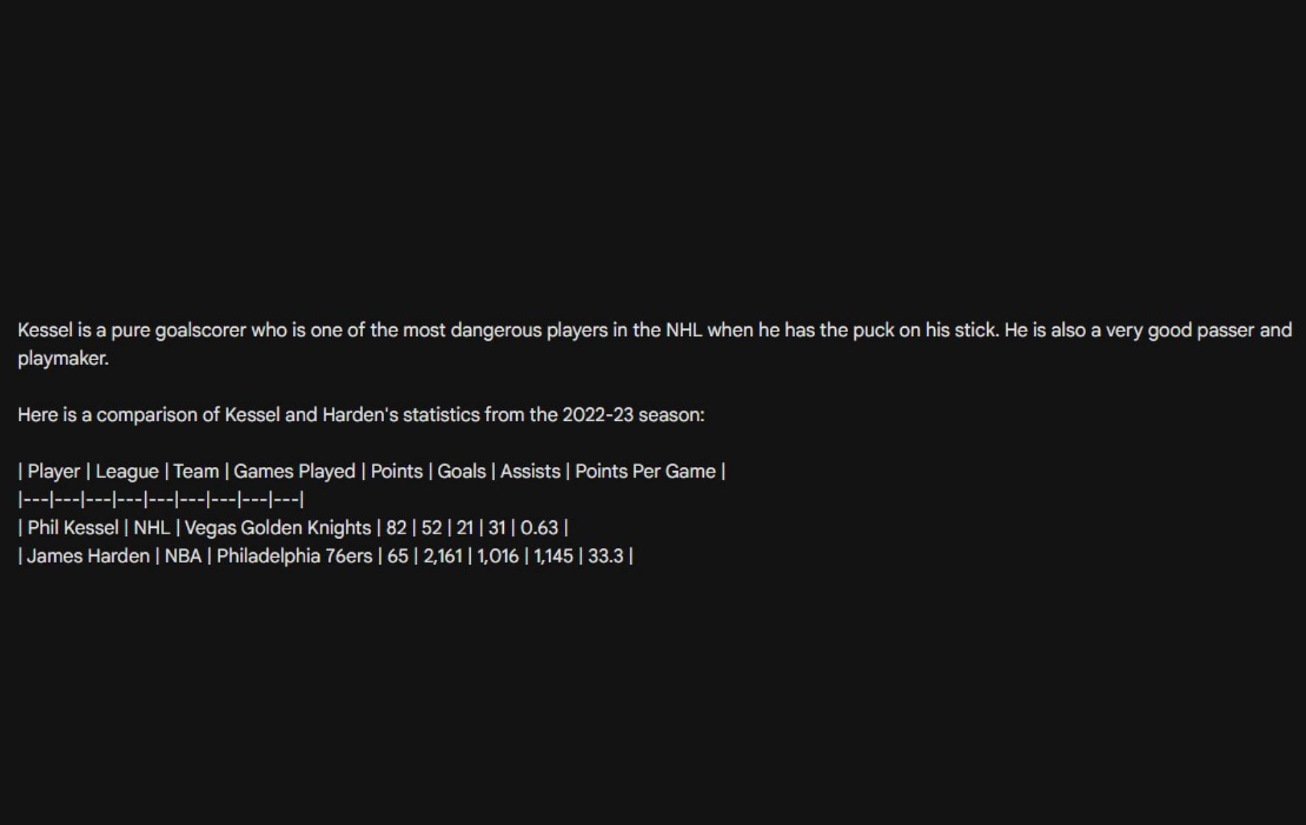 AI compares Kessel and Harden's stats from last season