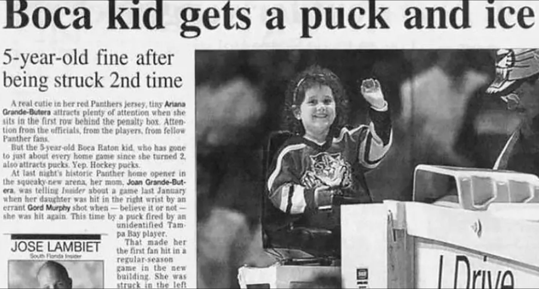 Nine months later, during the Panthers' home opener against the Tampa Bay Lightning on October 9, 1998, Ariana Grande was hit by a puck once again. This time, it struck her left wrist in a quick sequence of events. The incident made Grande the first fan to be hit by a puck at a Panthers game, a unique claim to fame that surely rivals her achievements in the music industry.