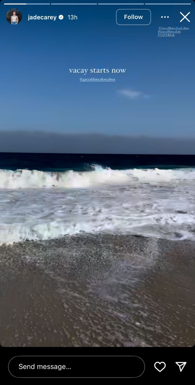 In a story shared on Instagram, Carey shared glimpses of her time at Garza Blanca Los Cabos, a beachfront resort in Mexico. She wrote: