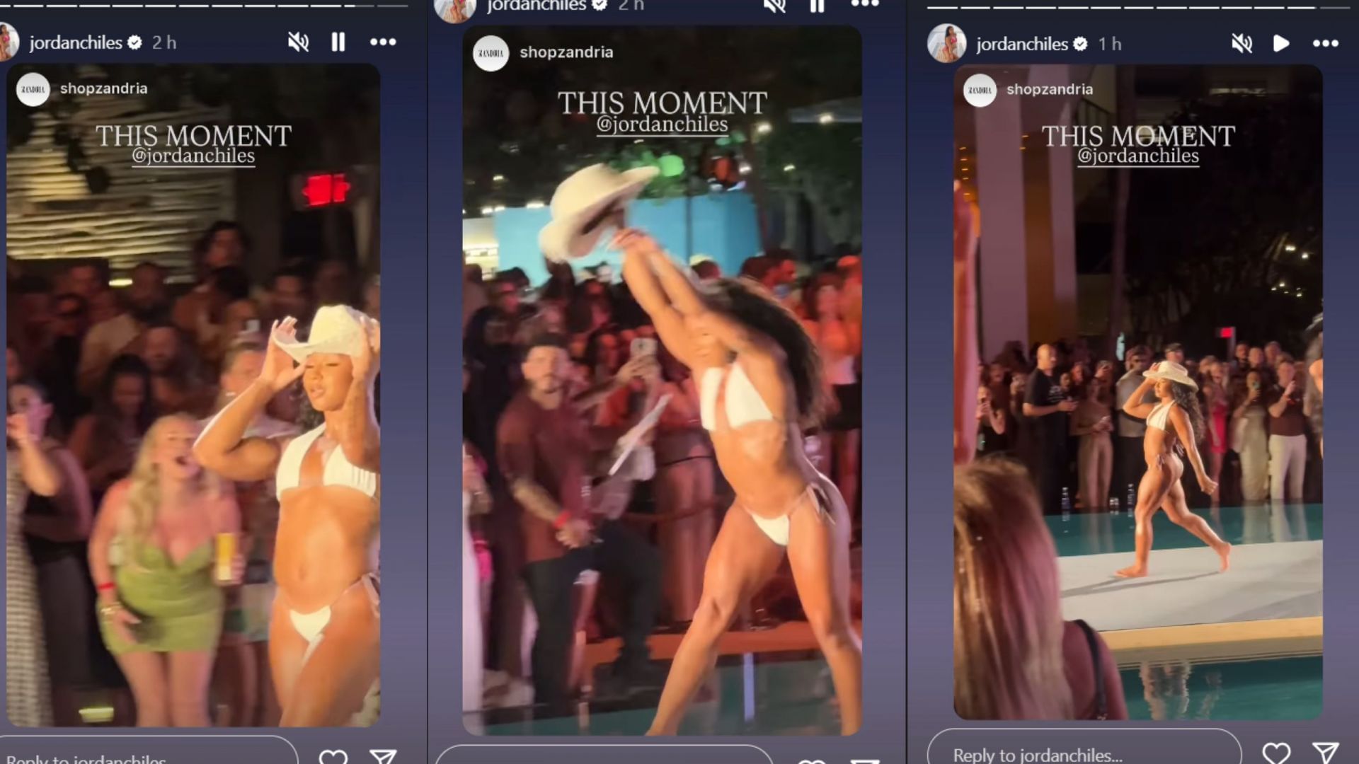 Olympic gold medalist Jordan Chiles left fans in awe with a front flip during the Sports Illustrated Swimsuit runway show in Miami. Following her debut as a cover model for the SI Swimsuit edition, she made a stunning entrance at Miami Swim Week, marking her first appearance on the runway.