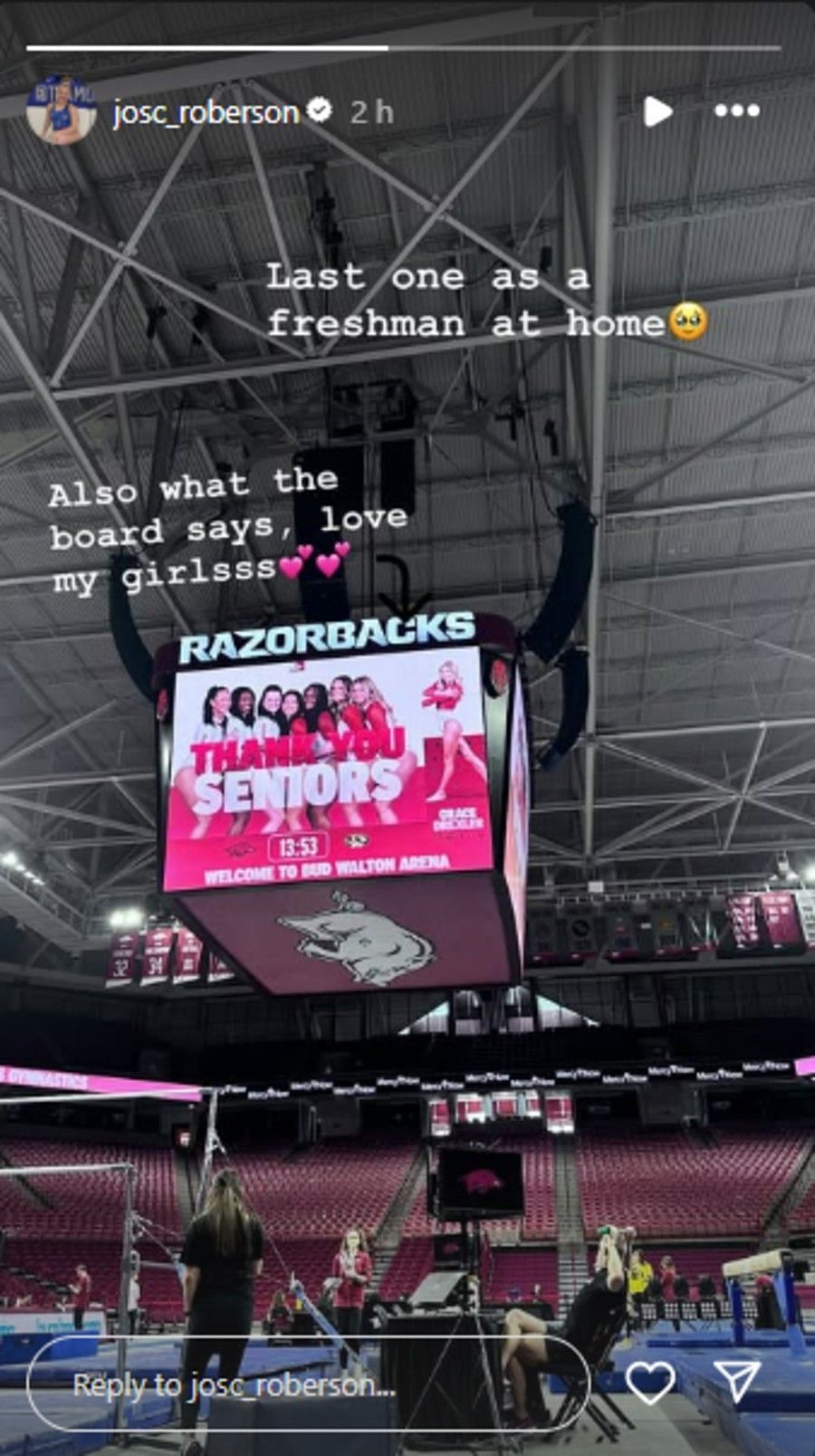 Joscelyn Roberson recently expressed her feelings after competing in the Arkansas Razorbacks' last home game of the 2025 season. Roberson concluded her regular season as a freshman with the Razorbacks on Friday, March 14, 2025, at Bud Walton Arena in a clash against No.7 Missouri.