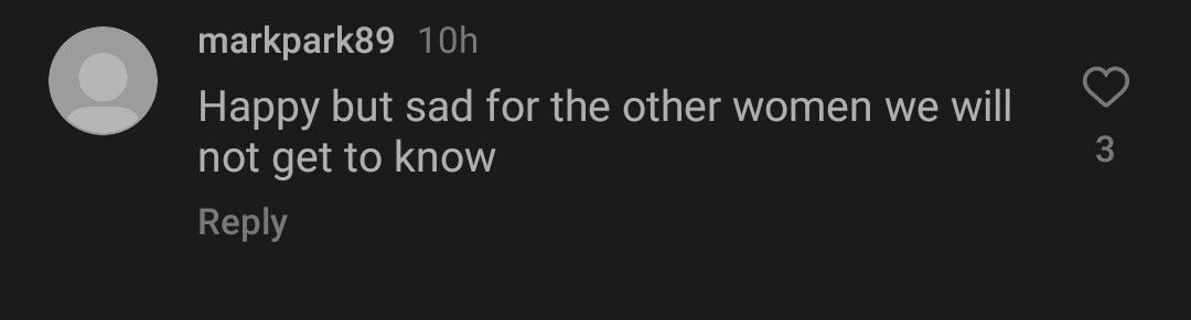 "Happy but sad for the other women we will not get to know," another fan wrote.