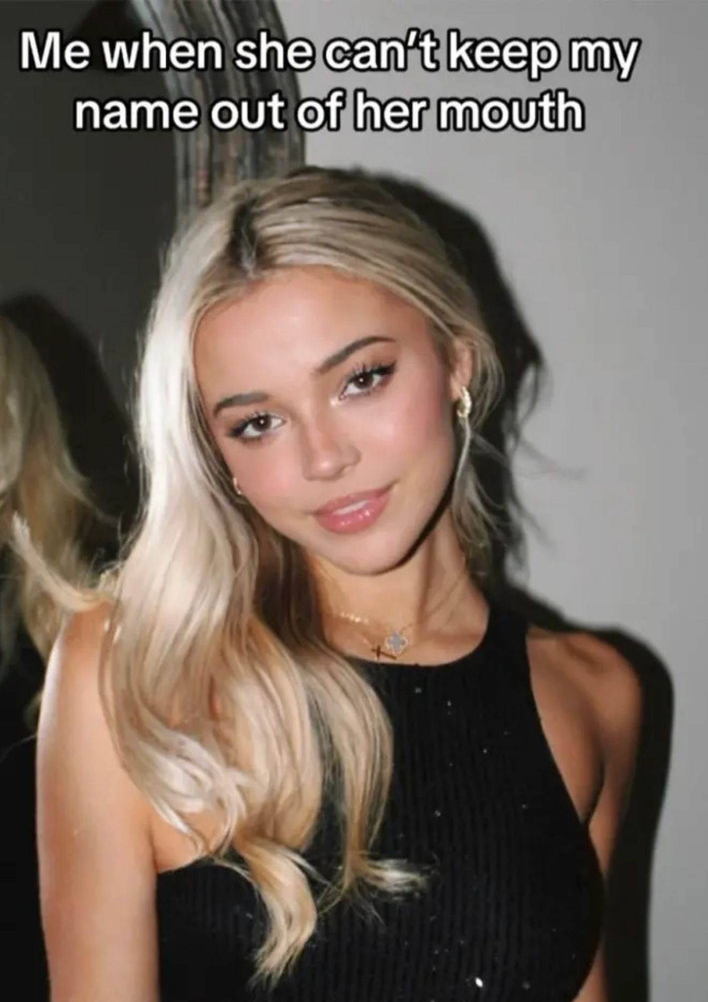 “Me when she can’t keep my name out of her mouth,” wrote Dunne.