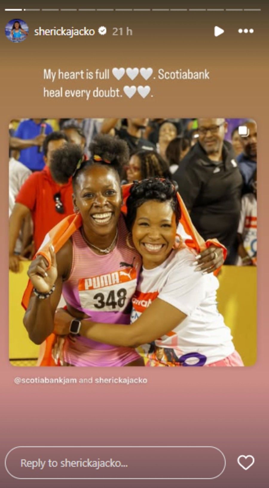 Jackson followed Tina Clayton in second place and clocked 10.88 seconds in the 100m race. Clayton dominated the event with a personal best of 10.81 seconds. The duo was followed by Shelly-Ann Fraser Pryce. Following the race at Kingston Stadium, the four-time world championship gold medalist Jackson beamed with joy and wrote: