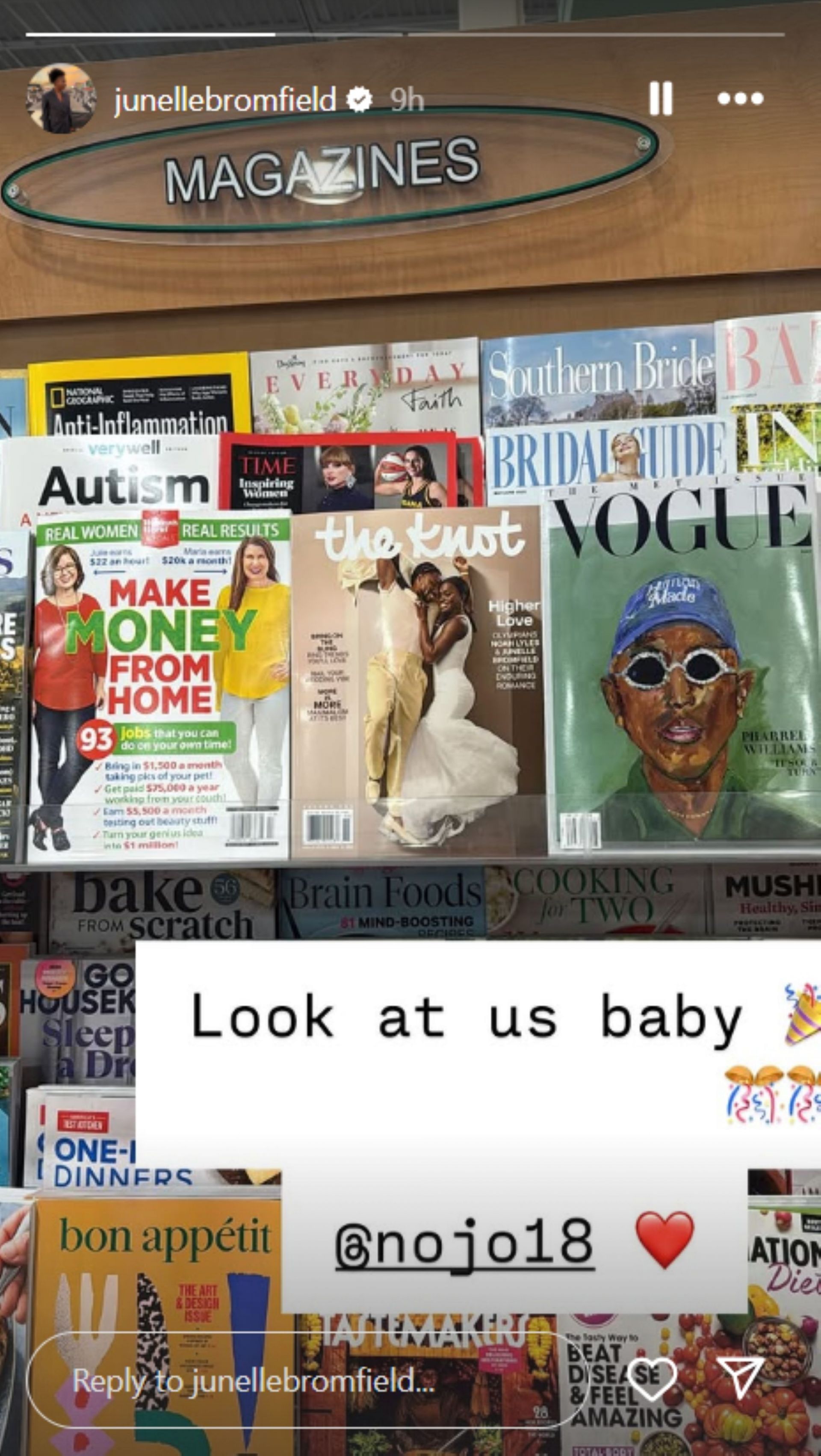 Lyles and Bromfield also modeled for the magazine's cover page, donning white-and-beige outfits. In a recent Instagram story, the latter posted a picture of a magazine rack, featuring The Knot's magazine with their cover story. She tagged Lyles in the caption and wrote: