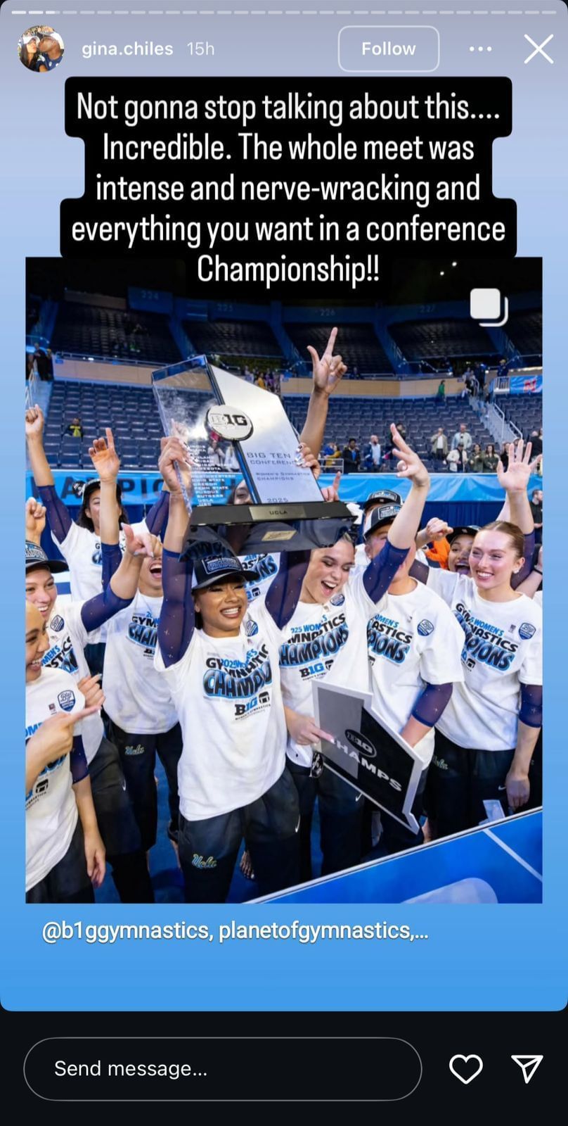 "Not gonna stop talking about this....Incredible. The whole meet was intense and nerve-wracking and everything you want in a conference championship!!,"