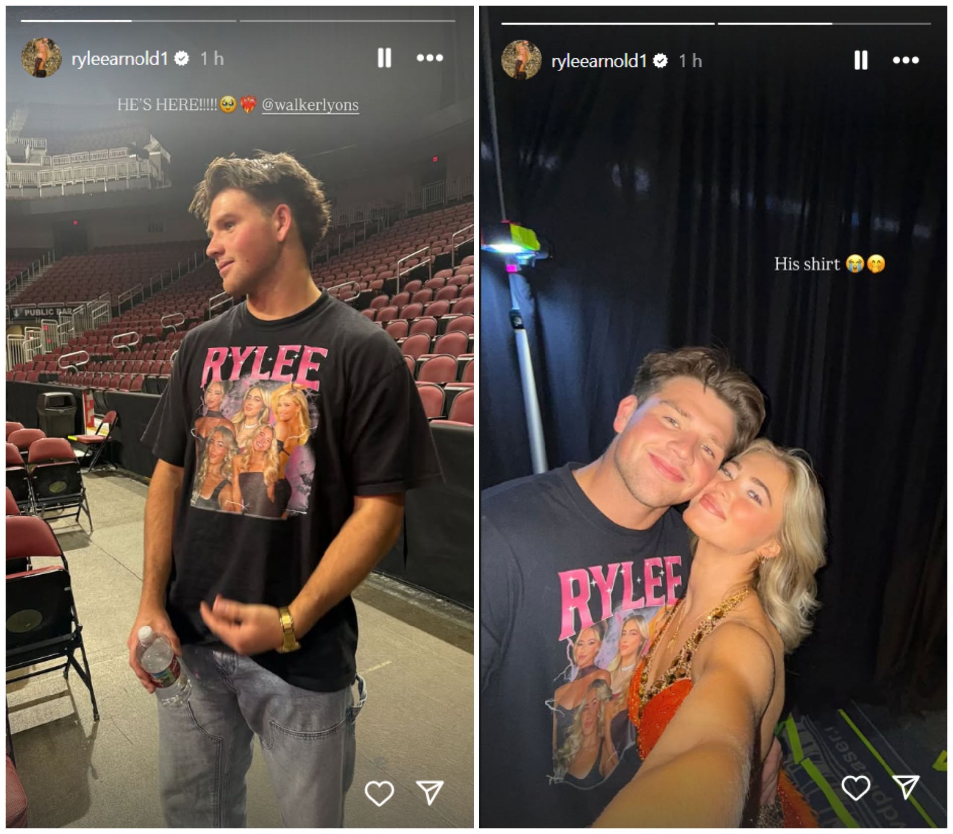 Stephen Nedoroscik's dance partner Rylee Arnold captured her boyfriend Walker Lyons sporting a t-shirt with her face printed on it, as he touched down at a DWTS tour stop. Arnold recently wished Lyons on his birthday with an adorable picture dump.