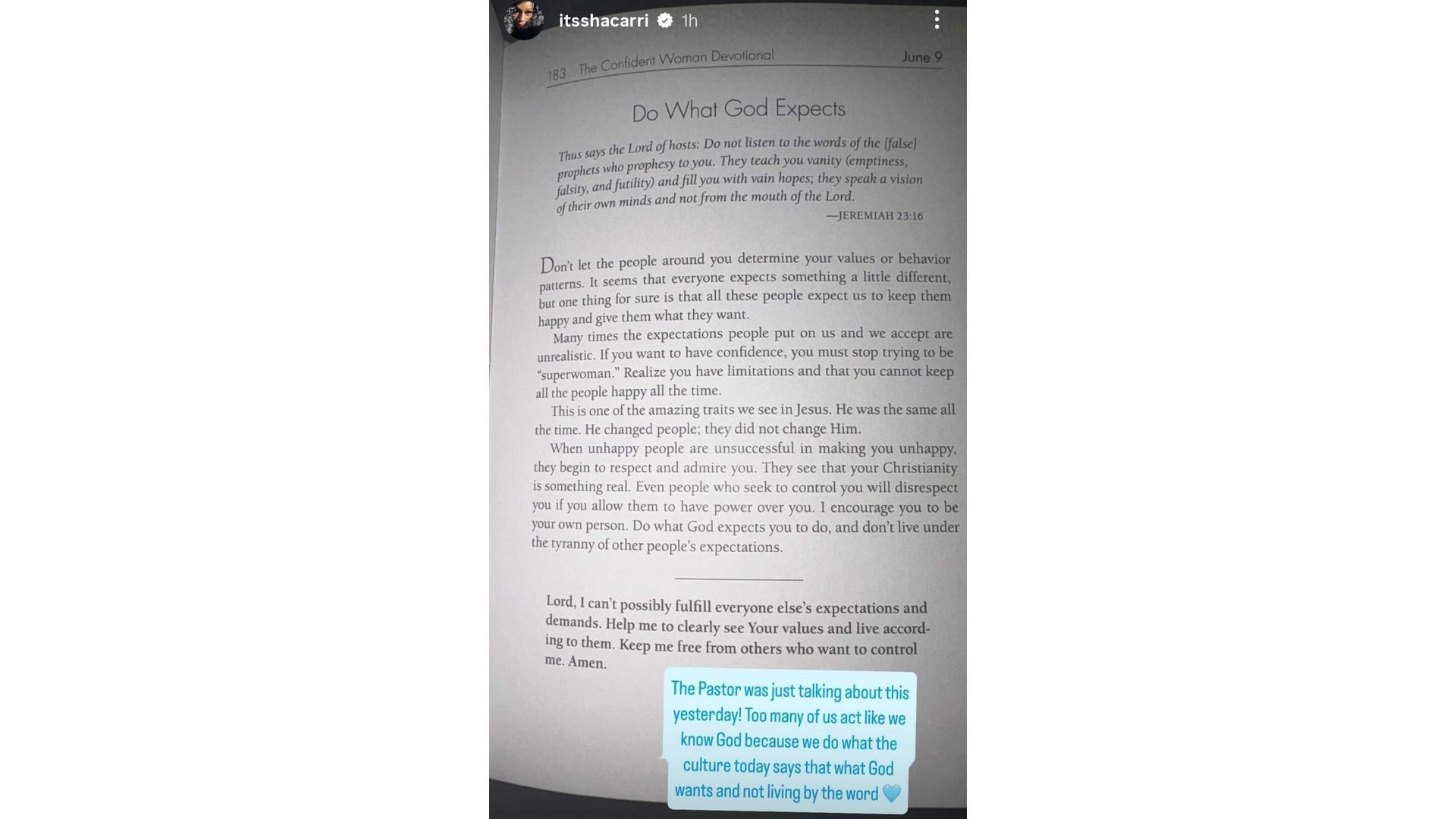 She stated that the extract means the exact thing that the pastor had said to her. She further added about the epitome of faith in society and wrote: