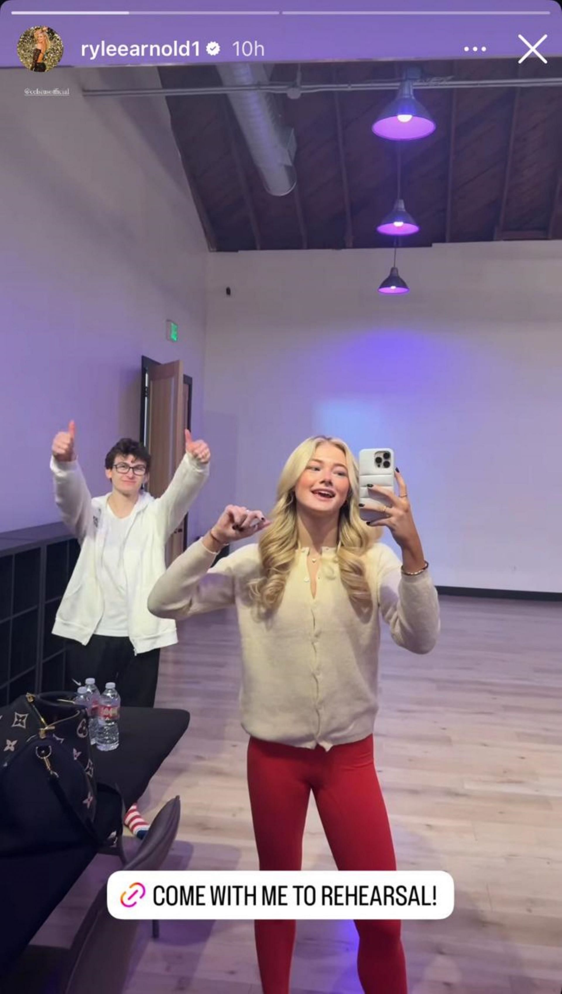 Arnold recently posted an Instagram story chronicling her practice day with Nedoroscik and lunch with her boyfriend, Walker Lyons. She started the video with an in-car clip and then introduced Stephen Nedoroscik in the rehearsal hall.