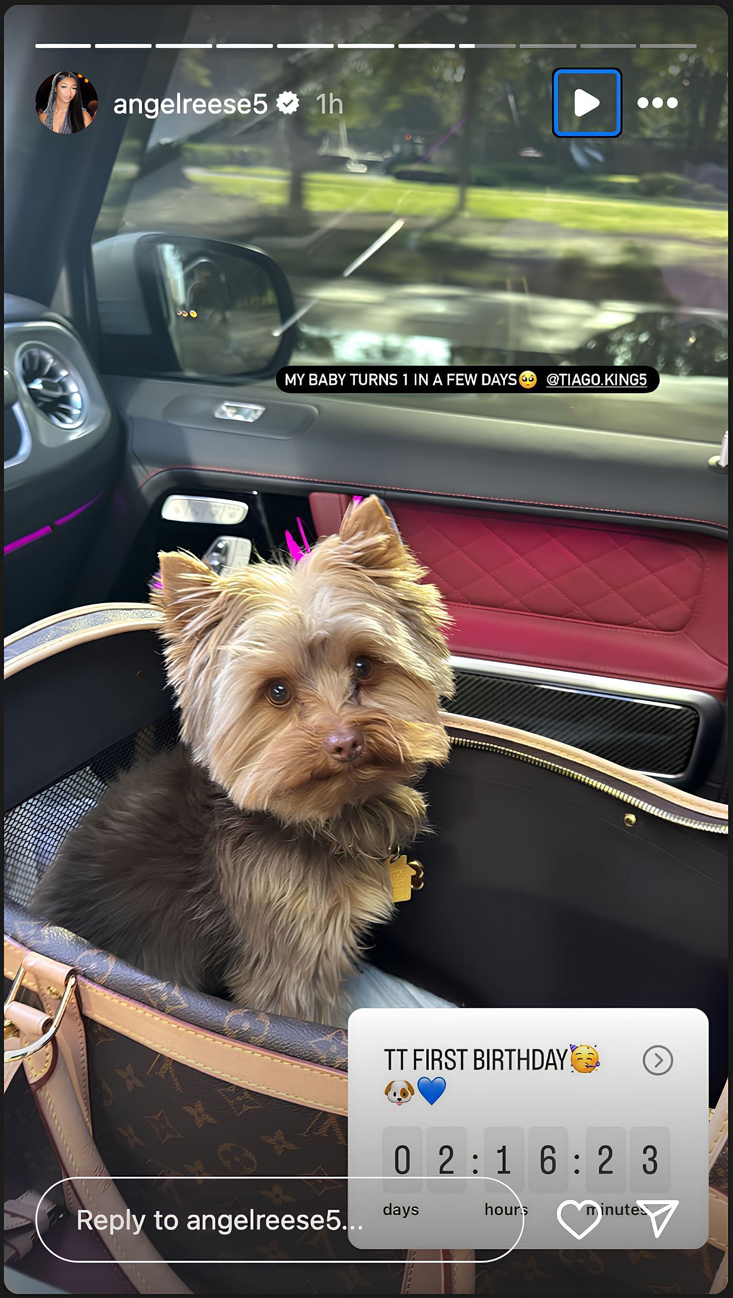 Among the other recent posts on Angel Reese's Instagram story was a big announcement regarding her dog. Later this week, Tiago will be celebrating his first birthday.