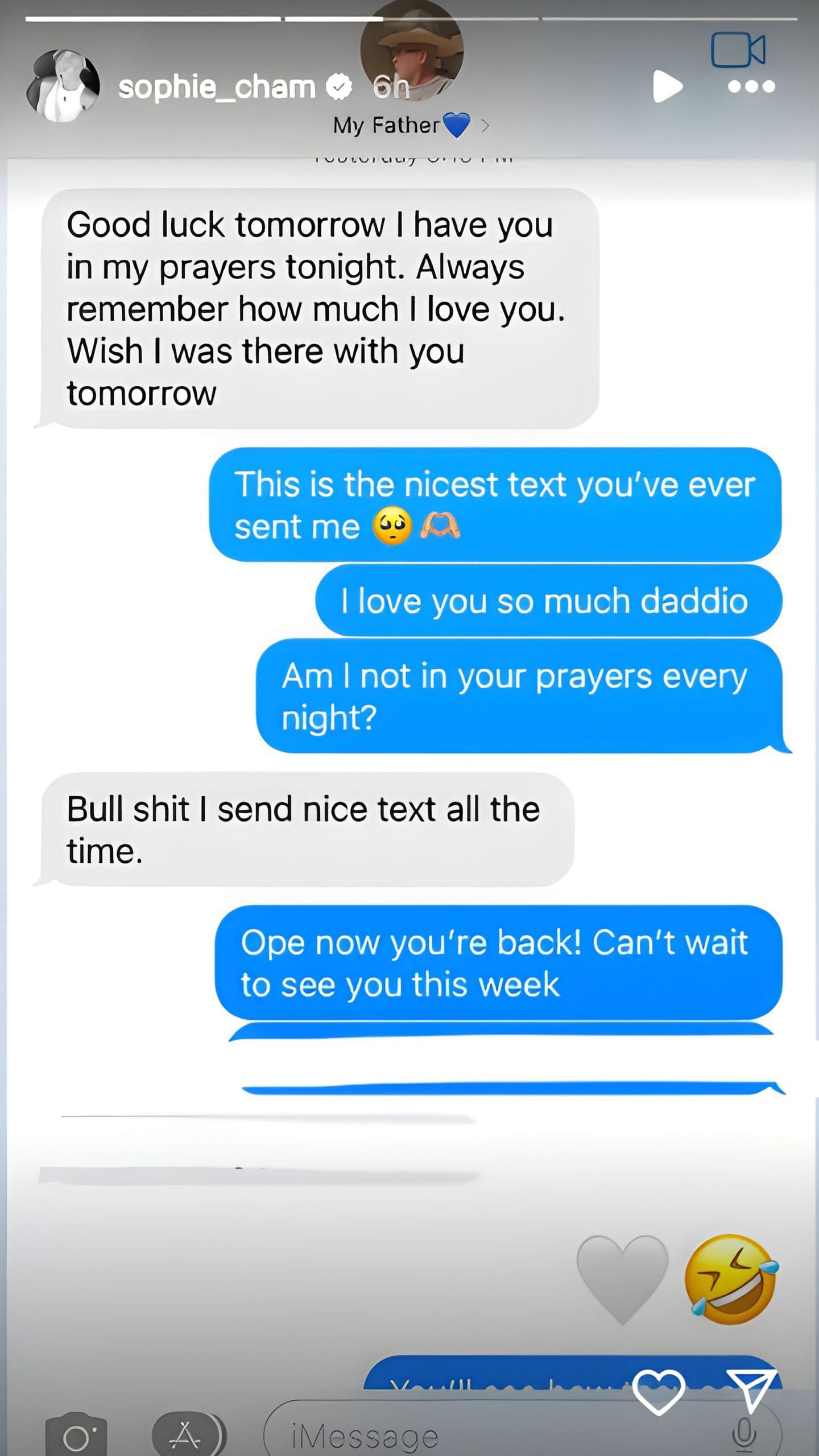 "This is the nicest text you've ever sent me," Sophie replied.