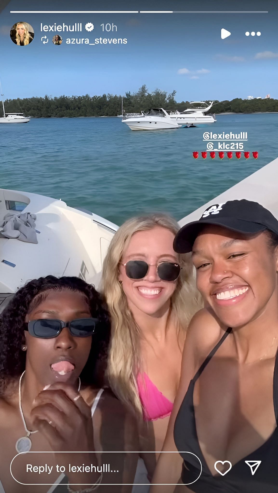 Hull also reposted a picture from her teammate Azura Stevens, which showed her, Stevens and Kahleah Cooper enjoying the sun on a yacht ahead of their Unrivaled clash against the Laces.