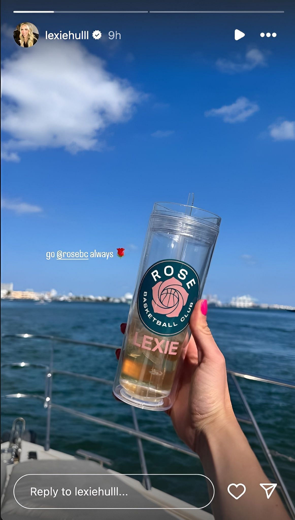 Ahead of the Unrivaled playoffs, in an Instagram story, Hull gave a shoutout to her team. She posted a photo of a sipping cup that had the logo of Rose BC on it. In the background, the ocean was visible.