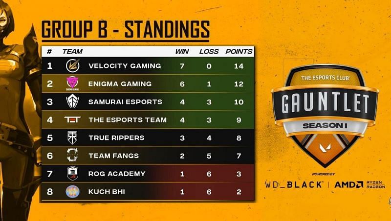 Godlike Esports secured the second position in the group and qualified for the TEC Gauntlet Season 1 Playoffs. They secured 12 points from seven games in the Regular Season, losing just one match to Global Esports.
