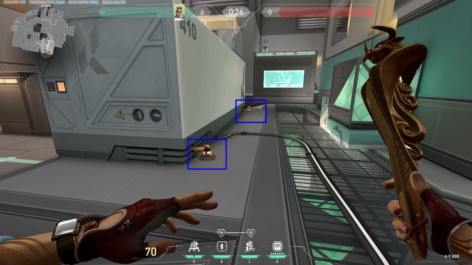On B-site, Chamber can place his first Trademark just ahead of the site's main entry lane. This alerts Chamber of any presence on B Green. The second trademark can be placed adjacent to the box in the site's default plant location. This aids players in delaying abrupt spike-plant situations.