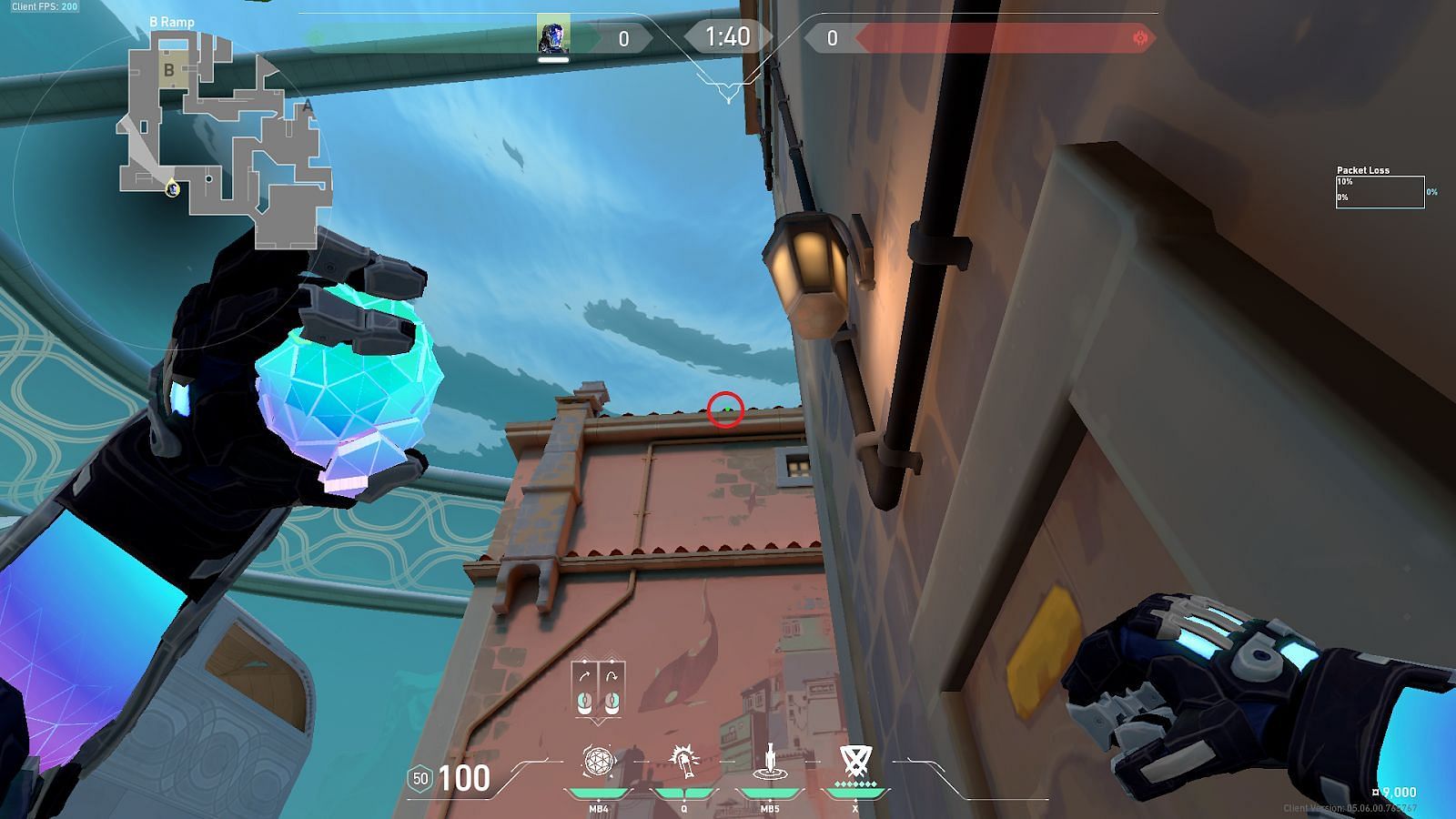 Look towards the B-Site and position the Zero/Point ability icon on the HUD below the bottom left corner of the window (shown in a circle). Perform a simple left-click throw.
