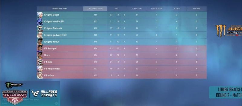 In the first match of the day, Force One Esports faced off against Enigma Gaming on Ascent Map. Force One Esports started off strong as the attackers, taking 9 rounds in the first half alone. After the side swap, Enigma Gaming put up quite a fight and almost turned the tie around, securing 8 rounds. But Force One Esports picked up 4 more rounds as defenders and qualified for the Lower Bracket Round 3.