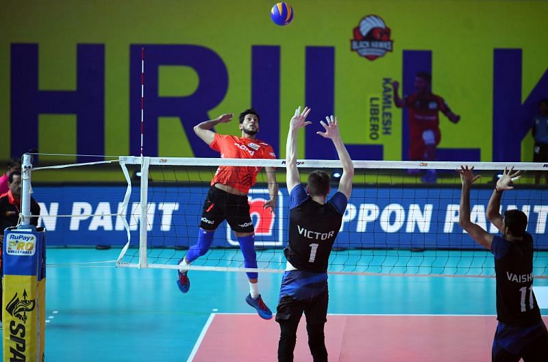 U Mumba Volley won the match with a 4-1 set margin and sealed their spot in the semifinals, leapfrogging the Black Hawks Hyderabad on the final standings due to better set difference.
