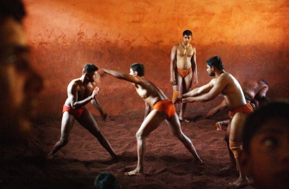 Indian men practice the three thousand year old sport known as “Kushti”, a form of wrestling, in its traditional form at the fight club Shahupuri