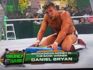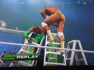 However immediate medical attention was provided to Sin Cara and he was stretchered to the back by paramedics. Barrett, Gabriel and Slater teamed up and gained the upper hand over the others. However that didn’t last for too long as Wade Barrett tried to retrieve the briefcase and was promptly stopped by Gabriel and Slater. There was several high moment for everyone with all of them having a go at the briefcase hanging above the ring. Sheamus and Kane dominated most of the match. Then Kane got a beat-down from the others and went through the wasteland of Barrett and 450 splash of Gabriel. We finally had Rhodes, Barrett and Bryan on the ladder. Rhodes went down leaving it to Bryan and Barrett. Barrett tried to go for wasteland. However, Bryan delivered a kick which sent Barrett down. Daniel Bryan unhooks the briefcase and he is our Smackdown MITB winner. He can have a go at the World Heavyweight Championship at any time and any place, within a period of one year. Daniel Bryan truly deserved it and beat all odds to win the match. This match was fast and furious from the beginning to the end and the effort of all the guys has to be commended considering the fact that only 2 of the 8 contestants (Kane and Cody Rhodes) had the experience of being in a MITB ladder match before. Great match to kick off the show.