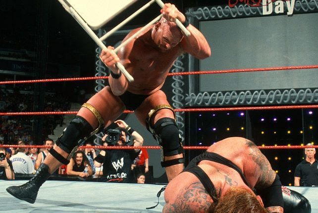 This No Holds Barred match would be the last of their feud, and was a fine way to end it. The two brawled all over, broke tables, a lot of use from a steel chair, several Chokeslams, Stunners and a Last Ride. Austin pinned Taker following interference from triple H and his sledgehammer.