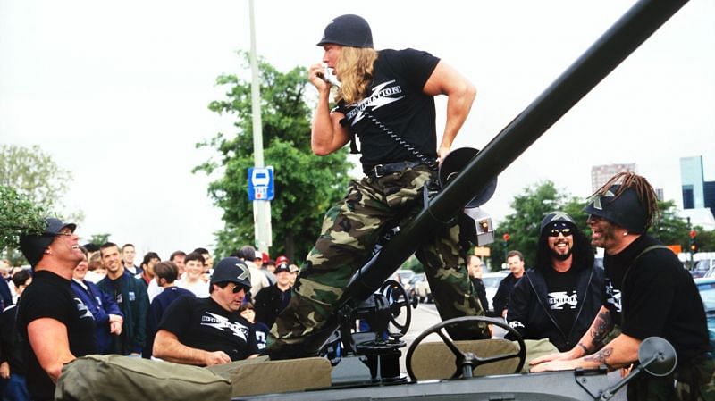 On April 27th, 1998, both RAW and Nitro were filming in the same town, just a few miles from each other. The WWF had the idea to 'invade' WCW using the DX Army. Triple H, Road Dog, Billy Gun and X-Pac all assembled on a tank and literally drove themselves to the door of the arena where Nitro was being filmed.