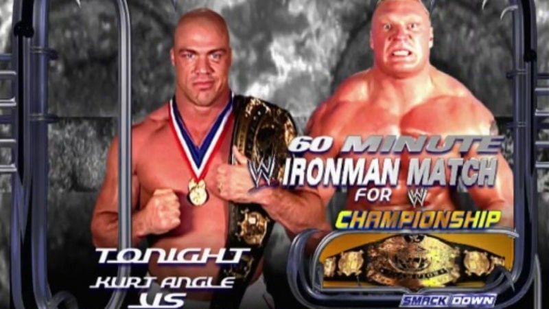 Deemed by many as being one of the greatest matches in the history of the blue brand, this Iron Man Match was contested for the WWE title that Angle had won at Vengeance 2003, and retained at SummerSlam, despite Vince McMahon's efforts to prevent the same.