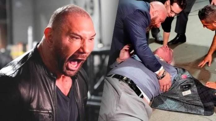 In another shock of the night, Batista made his return to the WWE programming taking out Ric Flair on the occasion of his 70th Birthday celebration.
