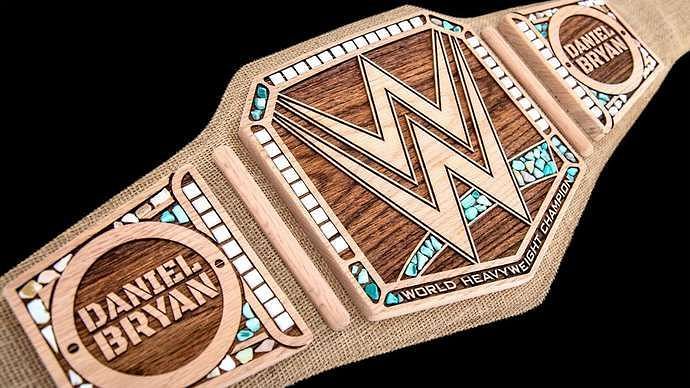 Last week, on the SmackDown after Royal Rumble, Daniel Bryan threw the WWE Championship in the trash because of the leather on it and how it was made by killing a cow named Daisy. He unveiled an eco-friendly version of the prestigious prize, made from sustainable hemp and wood. It looks solid and is a great temporary replacement for the original WWE title for the remainder of Bryan's reign.