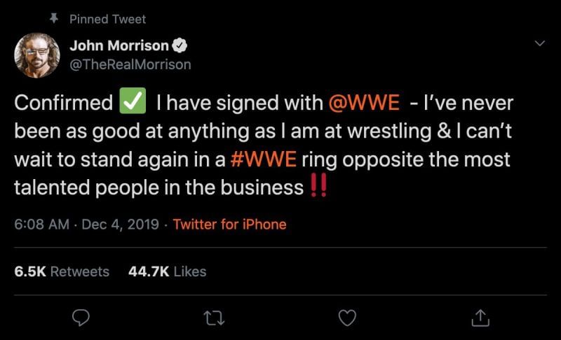 John Morrison (real name John Randall Hennigan) announced via twitter that he has signed with WWE and looked quite happy about it. He wrote that he couldn't "wait to stand again in a WWE ring.. (sic)" and was looking forward to facing "the most talented people in the business".