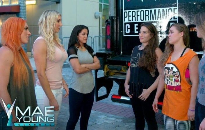 Take, for example, the women's division champion's showcase match. If none of the titles change hands before the PPV, the women's division match will be Becky Lynch fighting Bayley and Shyna Baszler in a triple threat match. To add to the surprise element of the show, Ronda Rousey can finally return and help Baszler win. Not only this furthers Rousey's angle with Lynch but it also sets up a future WWE vs UFC Horsewomen match.