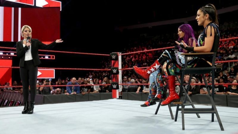 On Raw, Mickie James, Alicia Fox and Dana Brooke attacked Banks and Bayley for no apparent reason. Before the duo were having a feud with the Riott Squad, and now they are being attacked randomly just because James and Alicia are heels, and they are babyfaces.