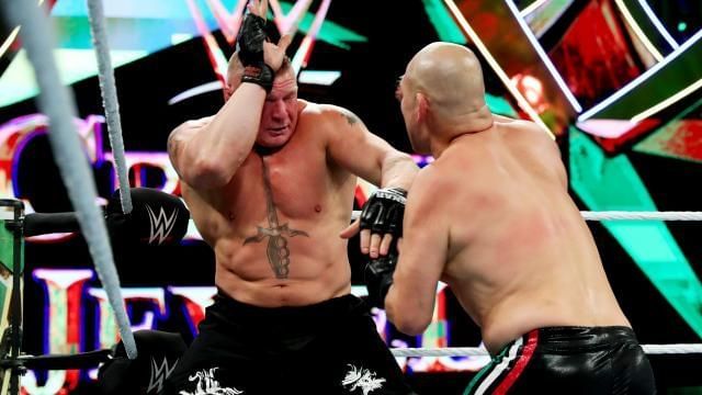 The Crown Jewel match between Cain Velasquez and Brock Lesnar for the WWE Championship had an MMA feel to it with both competitors exchanging punches before Lesnar made Velasquez tap out. The ending seemed like a good decision, as it played to each competitor's strengths and reminded fans that this feud had its beginnings in the UFC.