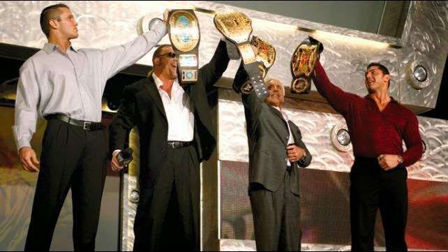The four remained a constant in the title scene until 2005. Batista, Orton, and Triple H began competing against one another, and after Batista won the 2005 Royal Rumble, Triple H tried to convince his ally to move to SmackDown to challenge JBL for the WWE Championship rather than his World Heavyweight belt.