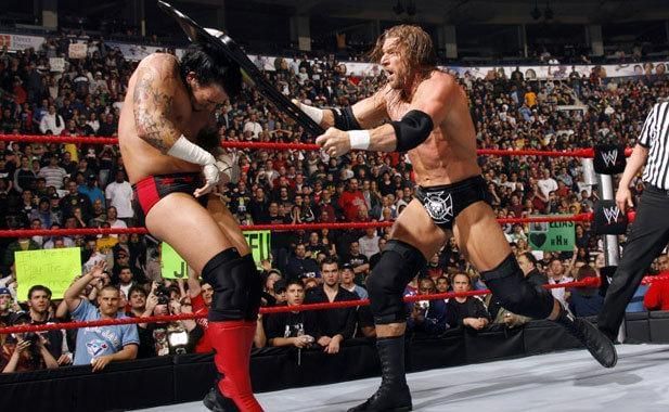 In January 2000, Benoit would win his first WWE World Championship after defeating Sid Vicious, but he would vacate the belt a day later and would sign for WWE alongside Perry Saturn, Dean Malenko, and Eddie Guerrero. Later that same month, Benoit and the others appeared in the front row of an episode of RAW is War. In 2004, Benoit would win his first and only WWE World title after defeating Shawn Michaels and Triple H in the Main Event of WrestleMania XX.