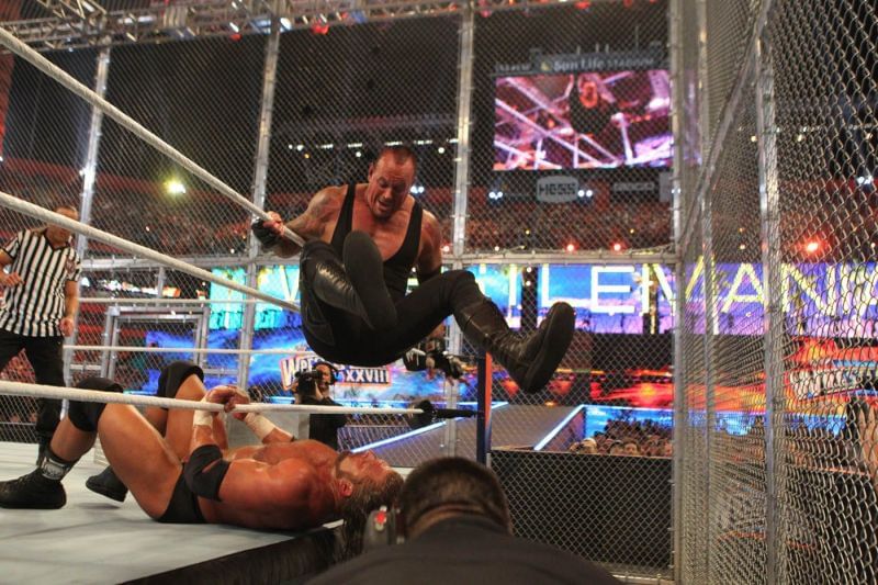 Triple H broke up the move and ended up getting caught in Hell's Gate himself. A second referee came down as Undertaker hits a chokeslam but it only fetched a 2 count. The Undertaker then attacked the referee and what follows was one of the greatest near falls in wrestling history.