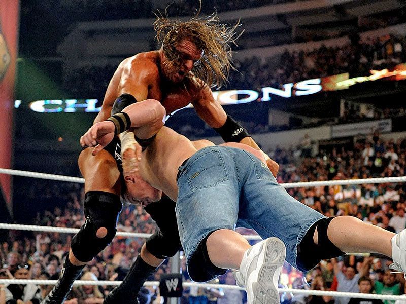 #1 John Cena pins Triple H by hitting the Attitude Adjustment