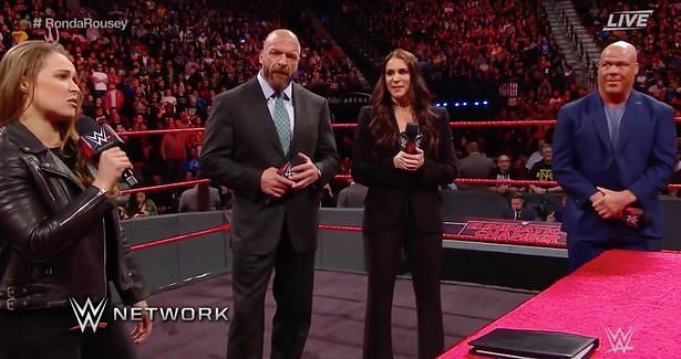 #5. Kurt Angle, Ronda Rousey, Stephanie McMahon and Triple H