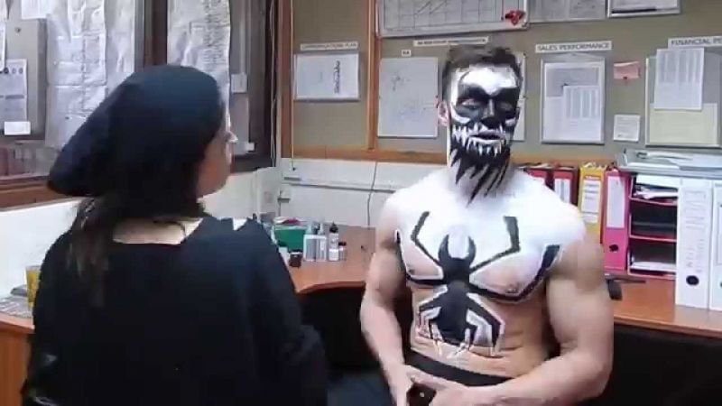 Finn Balor (when he was known as Prince Devitt) first wore the body paint that has become a hallmark of his character at New Japan's WrestleKingom 8 event in January 2014. He would continue to wear the paint, in many, many different iterations (comic book characters, mostly, and other designs), for the rest of his time in New Japan and independent companies in the UK until he officially signed a contract with WWE in the summer of 2014.