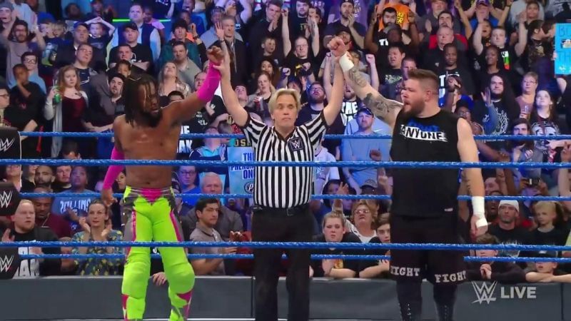 Kofi and Owens put up a great match against Rowan and Daniel Bryan tonight on SmackDown and even though KO potentially ruined Kofi's shot at the title, they showed great chemistry in the ring. Near the end of the match, Kofi leapt off the ropes to the outside to clear out Rowan so that KO could finish the match and that was a big moment for the tag team as it led to Daniel's pinfall.