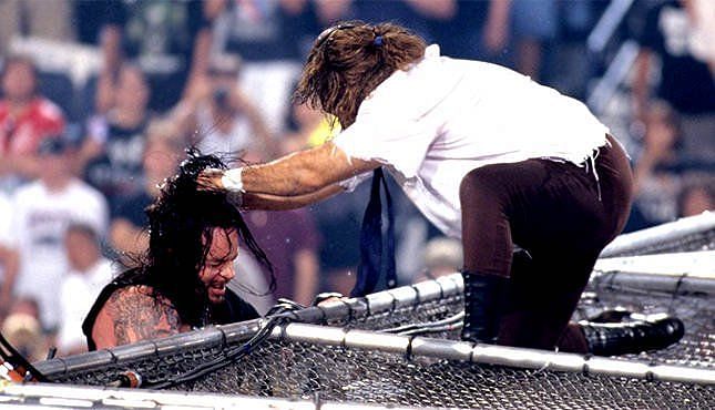 The Undertaker's demonic presence met with Mankind's psychotic spirit and produced possibly the most shocking moment in the structure's history.