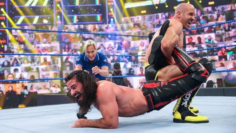 Last week on the Throwback edition of SmackDown, Cesaro defeated Seth Rollins in a WrestleMania rematch. This time, however, it wasn't clean. Thanks to a ringside scuffle that Rollins had with The Usos, he received a superkick that allowed Cesaro to pick up the victory.