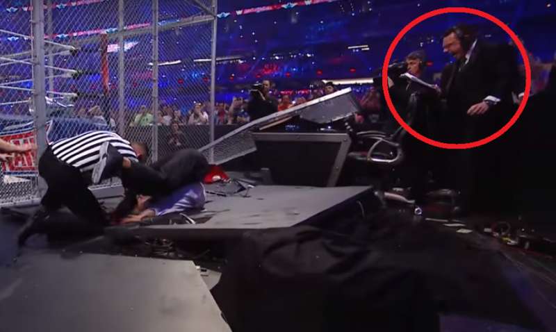 One of the most memorable moments of Wrestlemania 32 and a stunt that will go down in history, Shane McMahons leap of faith from the very top of the cell. Following which Michael Cole proclaimed "For the love of mankind, Shane just exploded through our table". On paper, those words do justice to this incredible jump, along with a subtle reference to Mick Foley (Mankind) who infamously fell from the top of the cell many years ago.