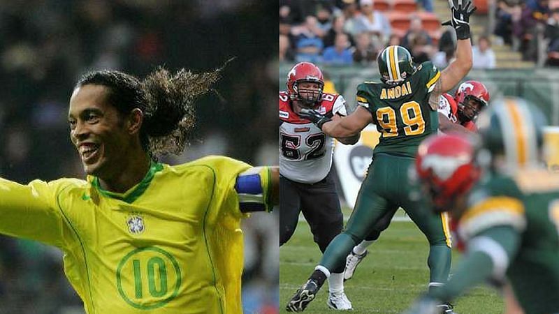 Reigns revealed to Y2J that the injury came about while he was kicking a soccer ball around “like Pele and Ronaldinho” before practice. Once he was fully healed, the Eskimos cut him and he never played football again.
