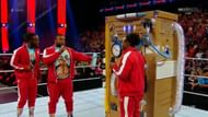 Big E looks at the time machine and asks Xavier Woods if the machine was from his parents’ house. On closer examination, he asks Woods why the keyboard is sticky. The implications are obvious, and yes, it’s not very PG.