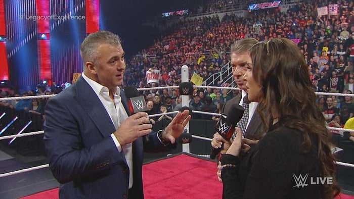 One of the loudest pops this year was for the returning Shane McMahon. Interfering during the presentation of the Vincent J. McMahon Legacy of Excellence awards, he confronted Vince and Stephanie McMahon and said that he wanted ownership of Monday Night Raw.