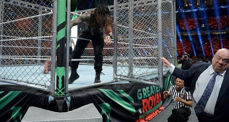 Paul Heyman has a knack of distracting his opponents when it becomes inevitable that his client is in trouble during a match. There have been many instances of his interference during Lesnar's 2nd run with the company since 2012, such as against Triple H at Extreme Rules in 2013, against CM Punk at Summerslam 2013, and more recently against Roman Reigns at the Greatest Royal Rumble.